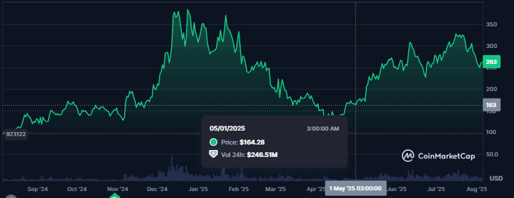Ha ganado aproximadamente un 60% desde el 1 de mayo a niveles de 263 dólares al cierre de esta edición.