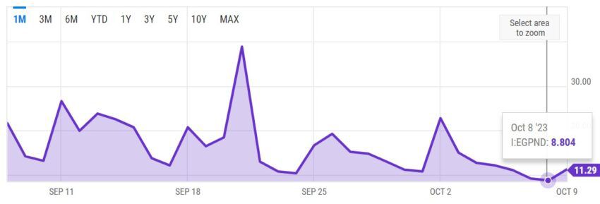 Este piso se tocó el 8 de octubre, pero desde entonces volvió a subir hasta los 11.29 Gwei. Si bien tuvo un alza, este es la mitad de lo que llegó a estar el 2 de octubre cuando tocó los 22 Gwei.