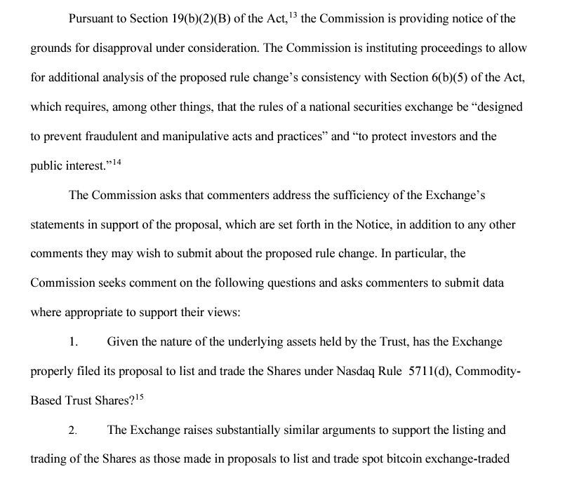Además, Johnsson cree que esta es una prueba oficial de que la SEC ya ha decidido el inminente veredicto de negación de los ETF de ETH al contado. Esto se debe, según Johnsson, a que este tipo de preguntas nunca se plantearon al considerar los ETF spot de Bitcoin (BTC).