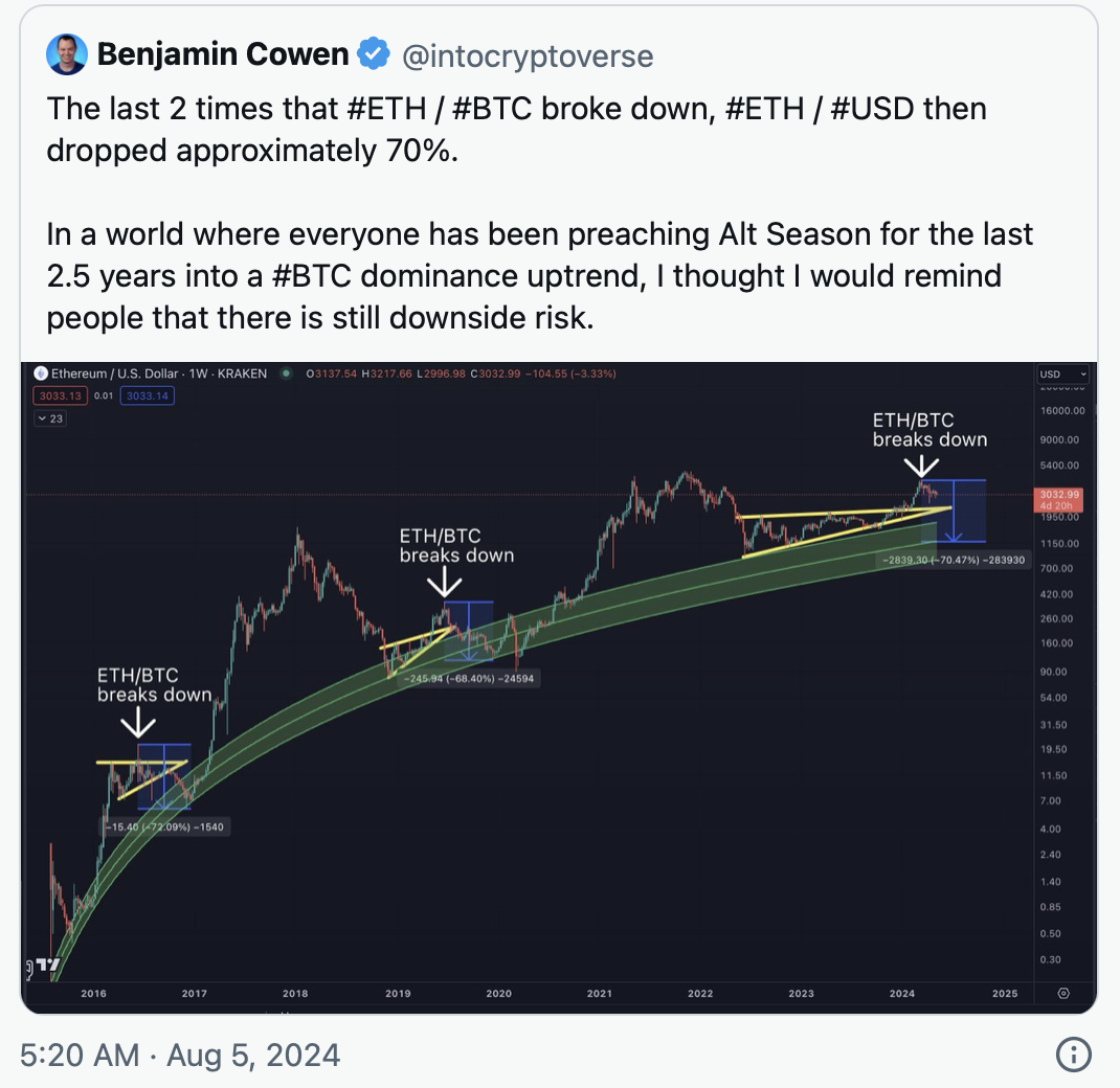 - Benjamin Cowen (@intocryptoverse) 5 de agosto de 2024