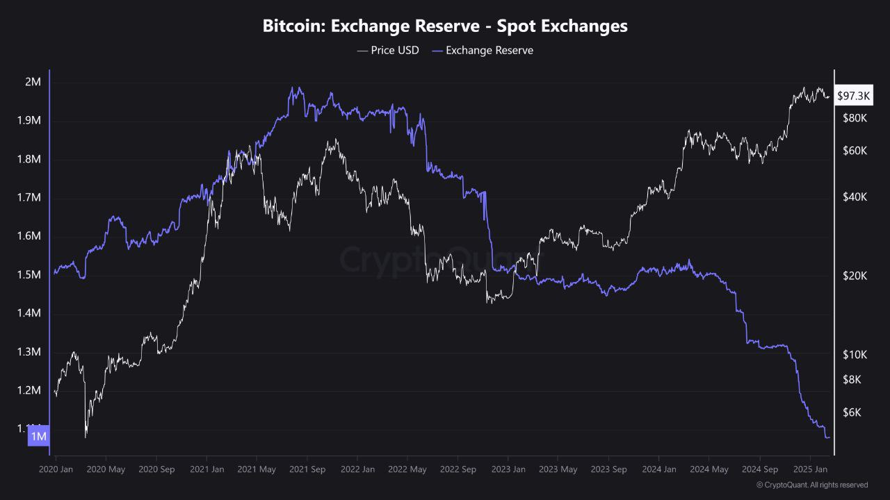 “Las reservas de intercambio de Bitcoin están en sus niveles más bajos en los últimos años, lo que indica que más BTC se está moviendo a billeteras frías, lo cual es un signo de tendencias a largo plazo.