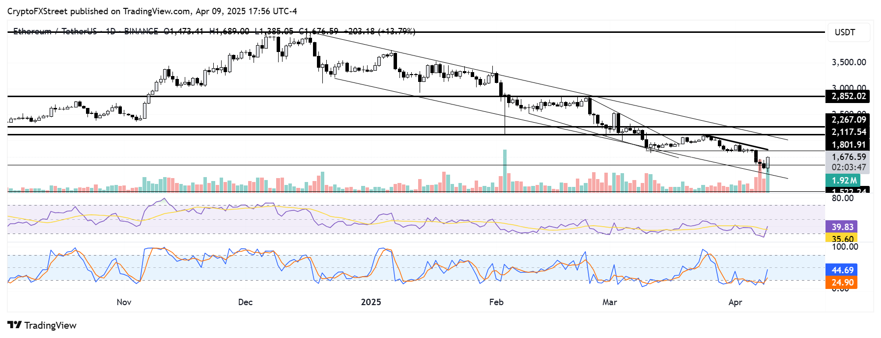 Ethereum ha visto una presión de compra aumentada en las últimas horas desde que el presidente Donald Trump anunció una pausa de aranceles de 90 días en 75 países. La principal altcoin saltó de un mínimo de dos años de 1.400$ a más de 1.650$ en el momento de la publicación.