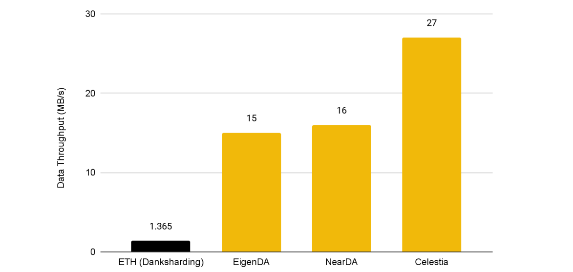 Capas de disponibilidad de datos alternativas como Celestia, EigenLayer y NearDA ofrecen un mayor rendimiento a tarifas muy bajas.