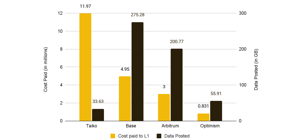 Muchos consideran que los rollups basados, que dependen de la secuenciación de L1, son la respuesta a la dinámica de escalabilidad-acumulación de valor de Ethereum. Taiko, un rollup basado, contribuyó más comisiones a Ethereum que los 3 principales L2 combinados mientras publicaba la menor cantidad de datos en el L1 durante el último año.