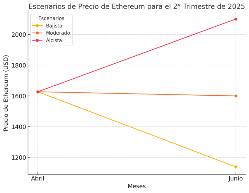ChatGPT, basándose en la situación actual y en los análisis de mercado, ofrece tres posibles escenarios para el precio de Ethereum en el segundo trimestre de 2025. Estos escenarios toman en cuenta las fluctuaciones económicas y el impacto de factores externos que podrían influir en la criptomoneda.