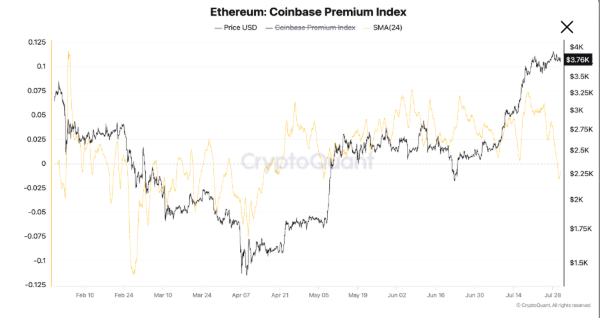 Gráfico del Índice de Prima de Coinbase de Ethereum. Fuente: CryptoQuant