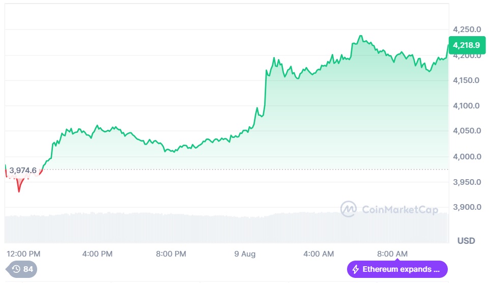 Este sábado 9 de agosto ETH superó los 4.200 dólares, algo que no se registraba desde el año 2021 y ahora apunta a romper su precio máximo histórico (ATH) de 4.891 dólares por unidad.