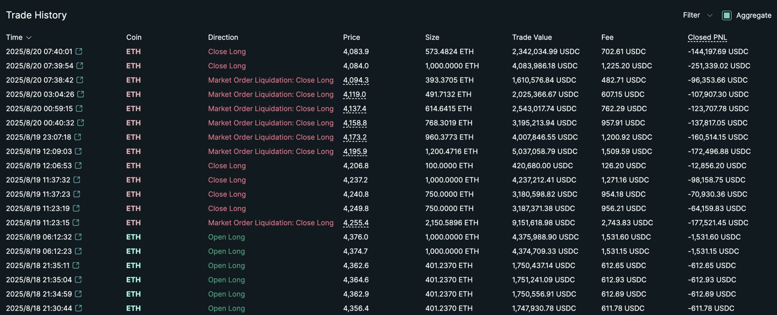 El 18 de hacesto, la decisión de cerrar todas las posiciones largas en Ethereum reportó al comerciante un beneficio de $6.9 millones. Esta cifra quedó muy por debajo del pico anterior, pero aún representó un incremento 55 veces mayor al monto inicial. Sin embargo, el mercado volátil continuó socavando el precario equilibrio de la fortuna del comerciante.