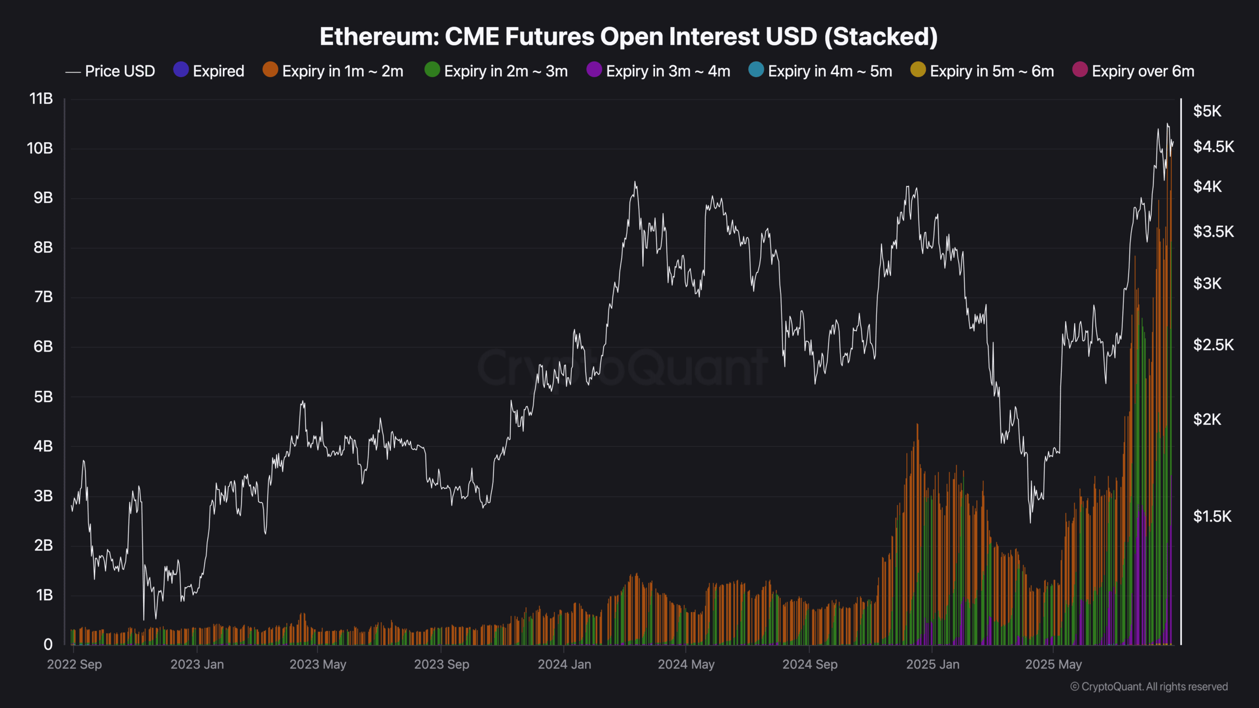 - El interés abierto en futuros de Ethereum de CME superó los $10 mil millones.