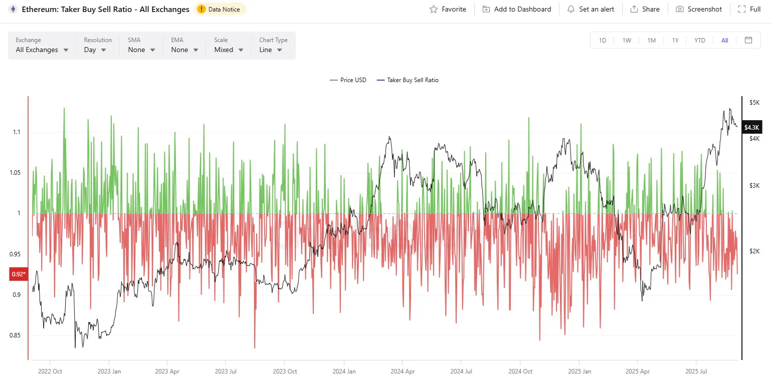 ETH enfrenta la mayor presión de venta desde noviembre de 2024, lo que genera expectativas de una posible caída del mercado. La relación comprador/vendedor/tomador indica una presión de venta a corto plazo que ha afectado a los mercados la semana pasada.