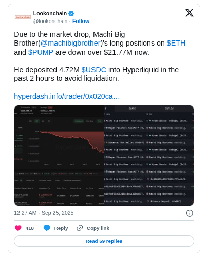 Lookonchain, una firma de análisis de blockchain, informó que, cuando ETH cayó por debajo de 4,000 dólares, la posición larga completa de 9,152 ETH de un trader (0xa523) valorada en 36,4 millones de dólares fue liquidada.