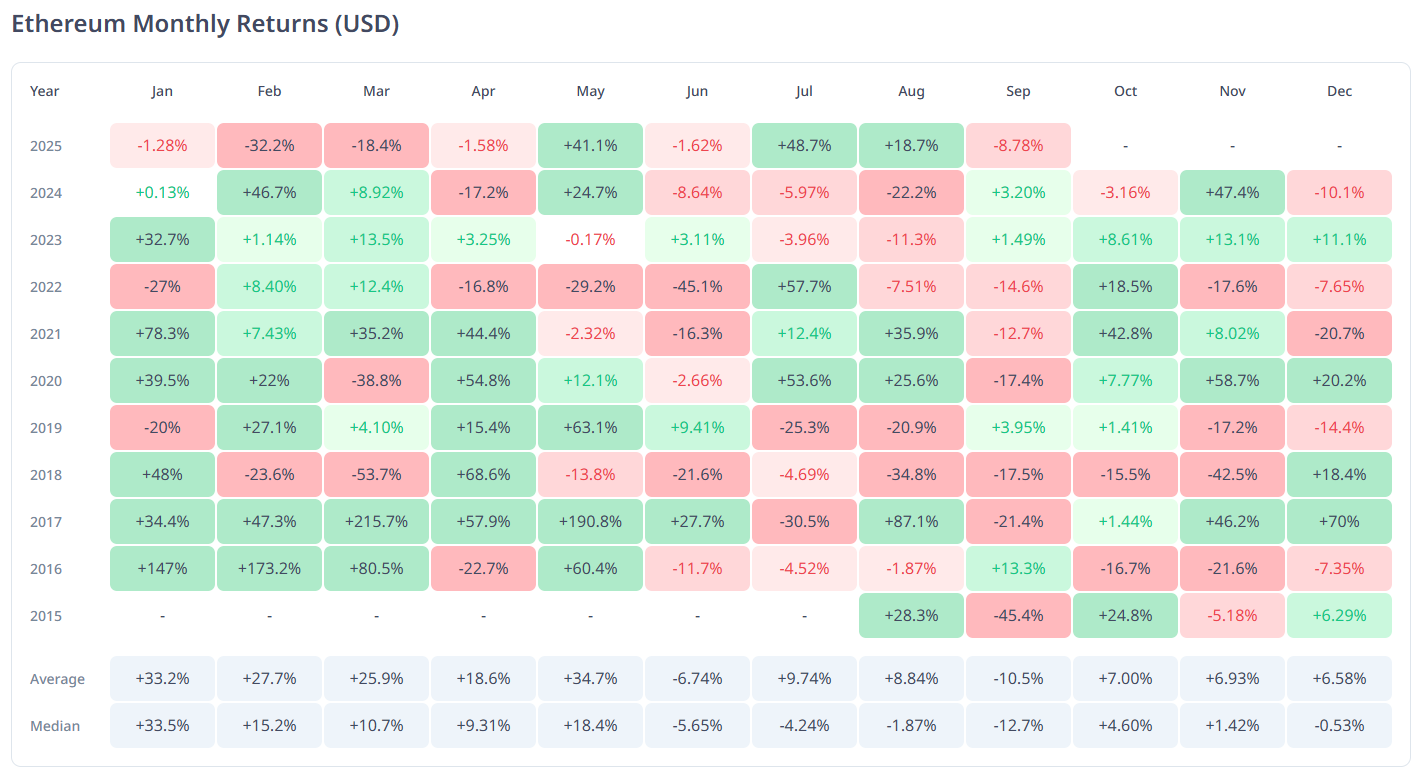 Teniendo esto en cuenta, es probable que ETH vuelva a replicar este comportamiento estacional y octubre sea un mes alcista.