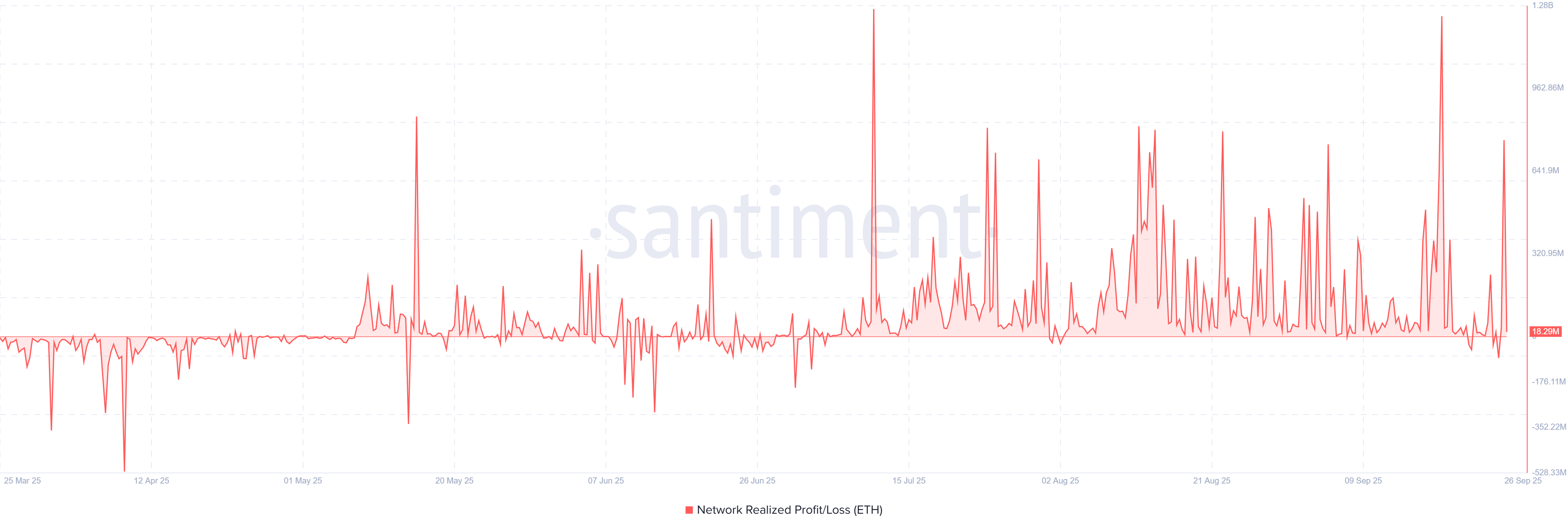 Beneficio/Pérdida Realizada en la Red de $ETH. Fuente: Santiment
