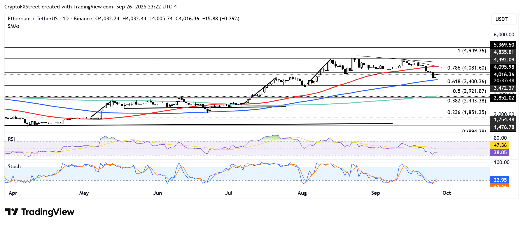 Ethereum ($ETH) se negocia alrededor del nivel clave de 4.000$ tras un aumento en la realización de beneficios el viernes.