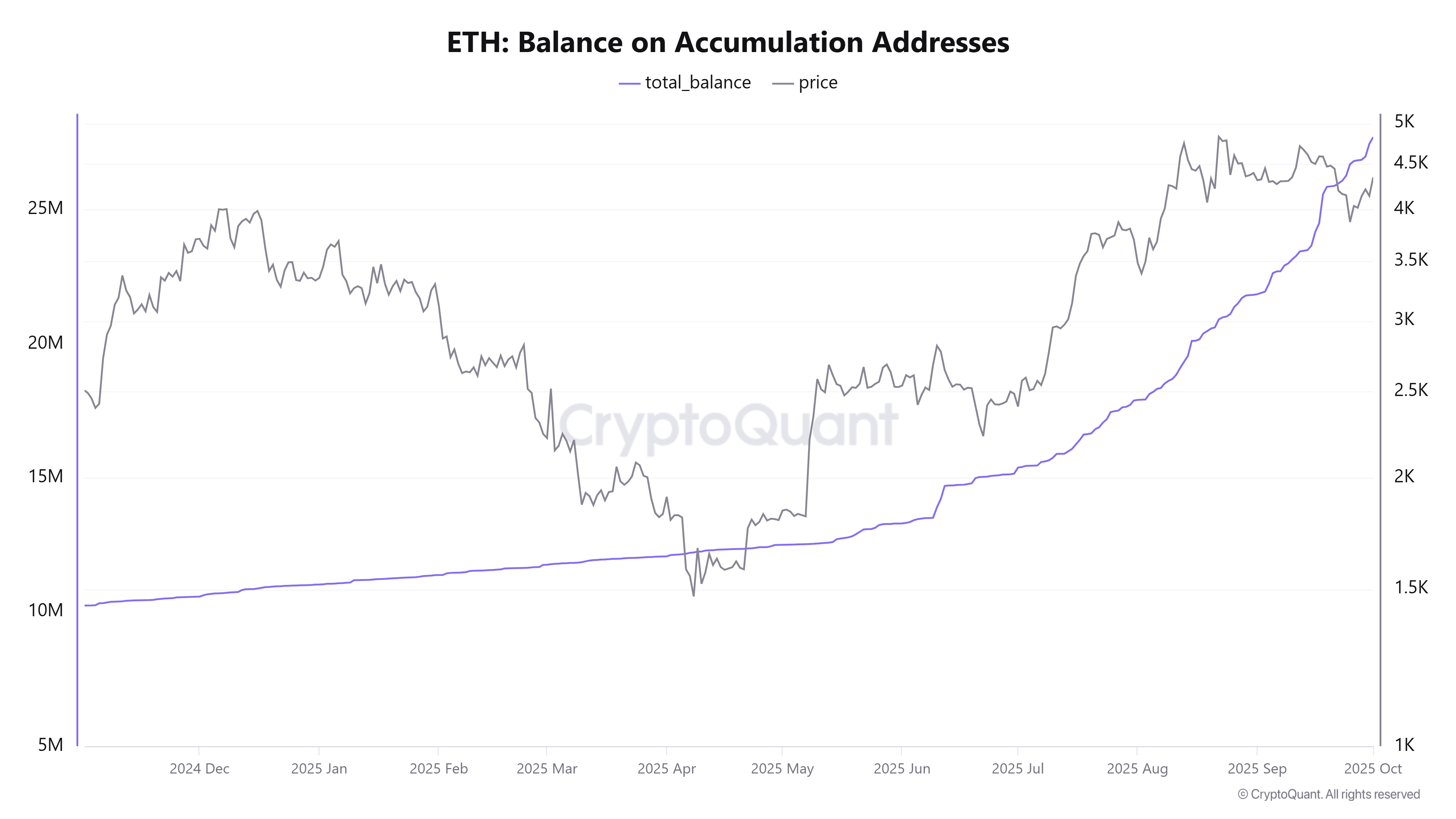 Saldo de ETH en Direcciones de Acumulación. Fuente: CryptoQuant