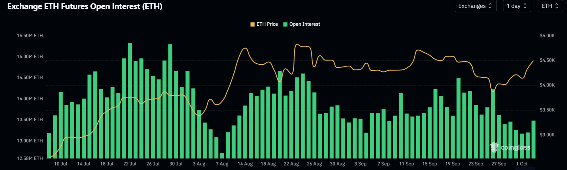 - ETH ha superado la SMA de 50 días y ahora está probando la resistencia de 4.500$.
