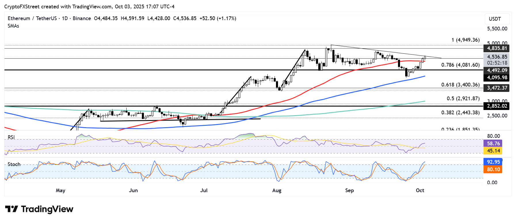 Ethereum alcanzó un máximo de dos semanas de 4.580$ el viernes, ya que el cierre parcial del gobierno de EE. UU. obstaculizó la publicación de los datos de Nóminas No Agrícolas (NFP) de septiembre.