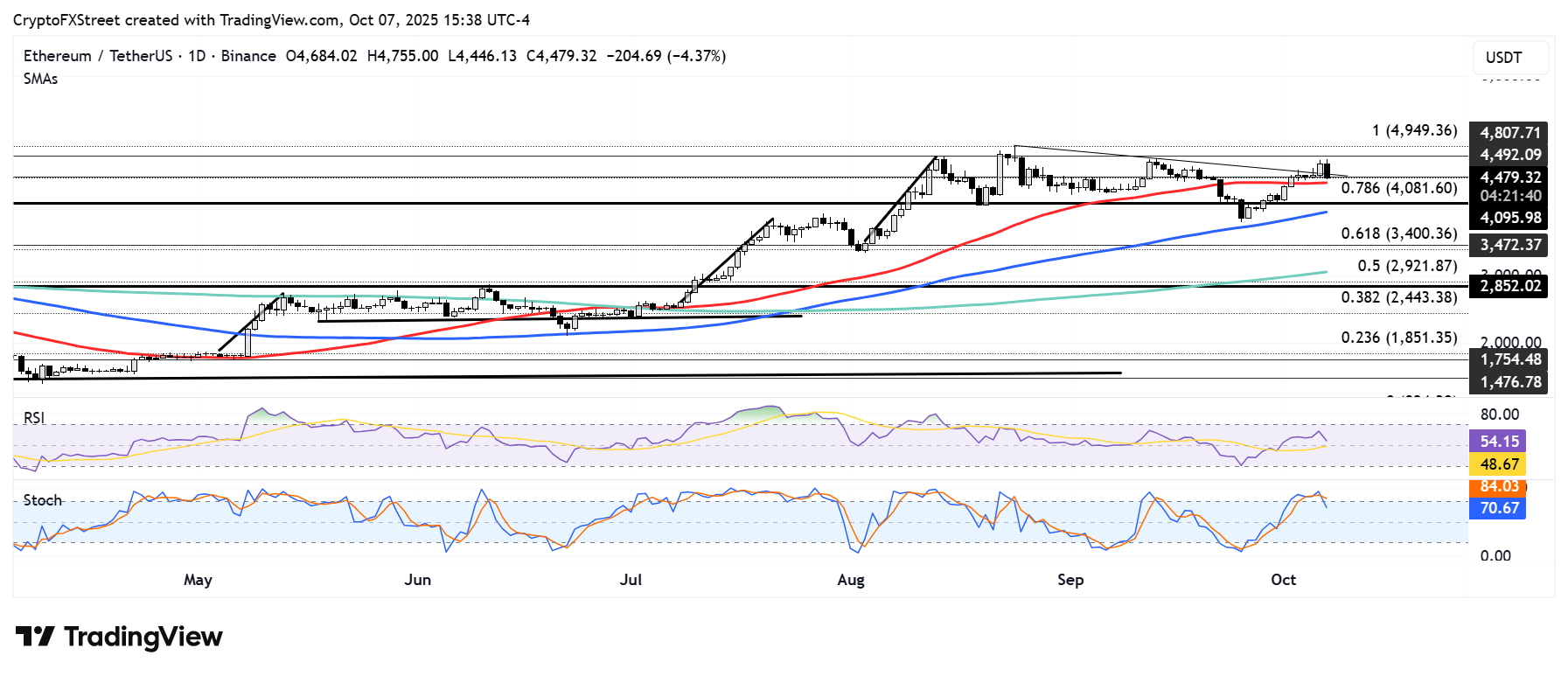 Pronóstico del Precio de Ethereum: ETH cae un 4%, prueba el soporte de la SMA de 50 días