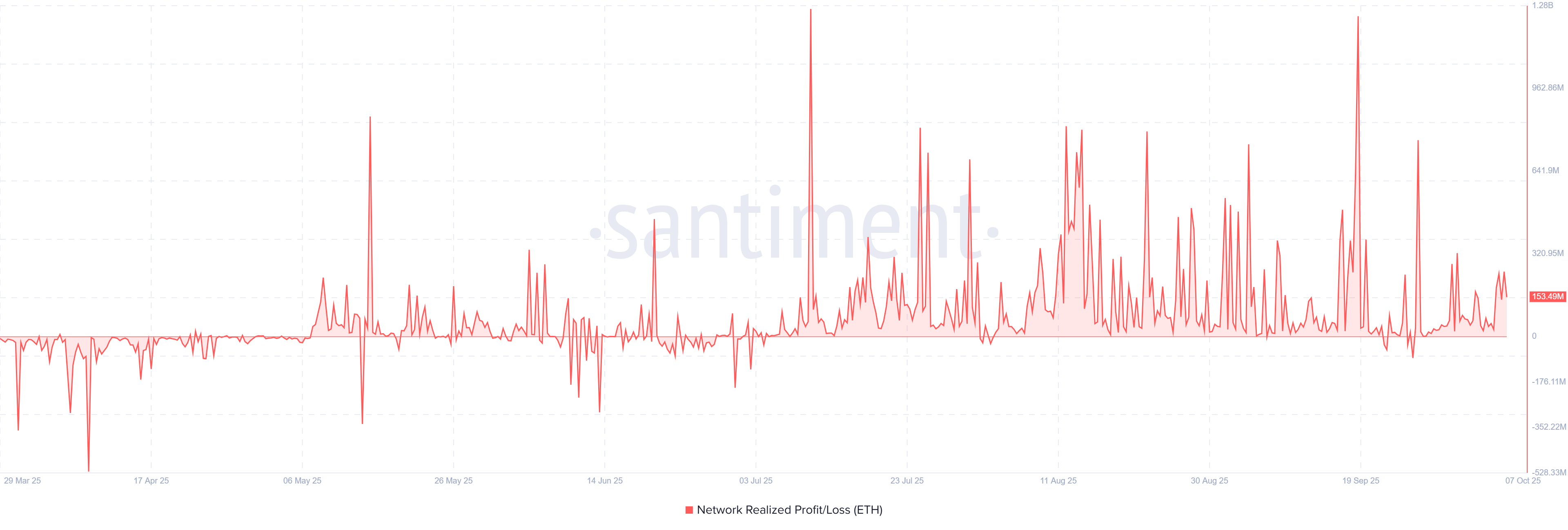 Beneficio/Pérdida Realizada en la Red ETH. Fuente: Santiment