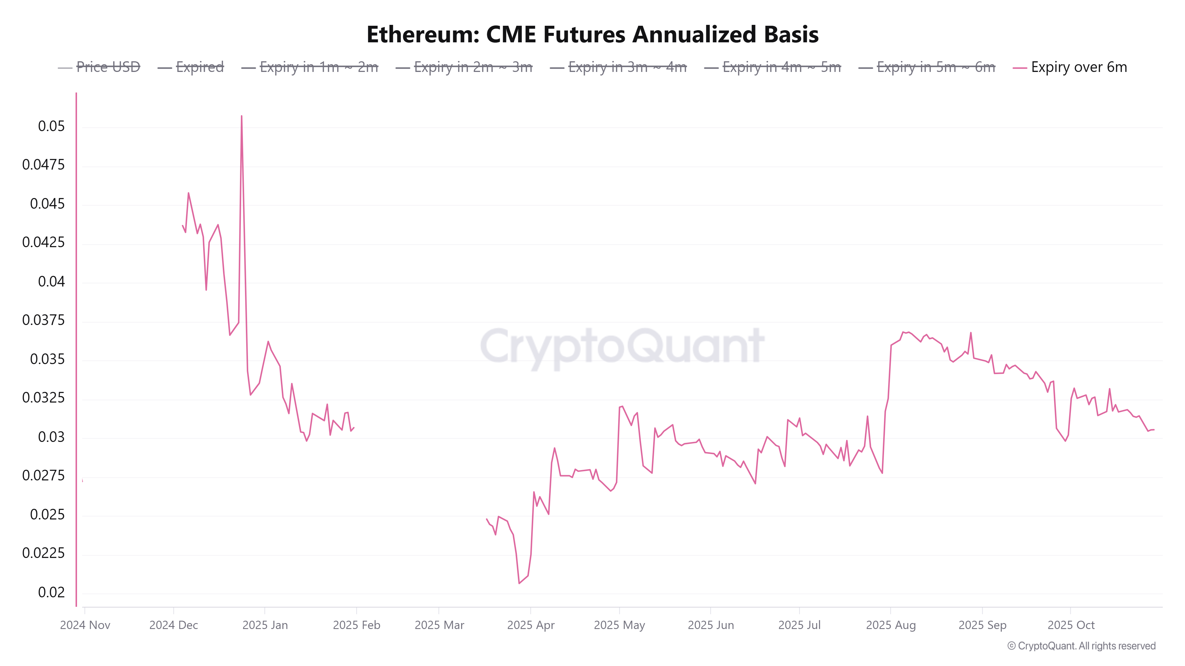 Base anualizada de los futuros de ETH de CME. Fuente: CryptoQuant