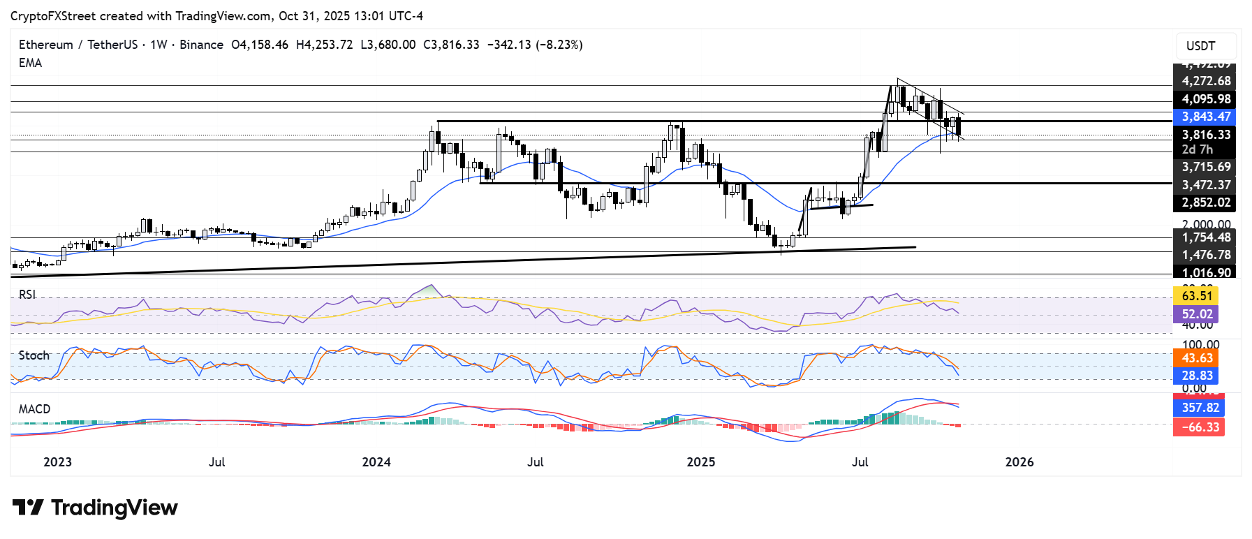 Pronóstico del Precio de Ethereum: ETH podría caer a 3,470$
