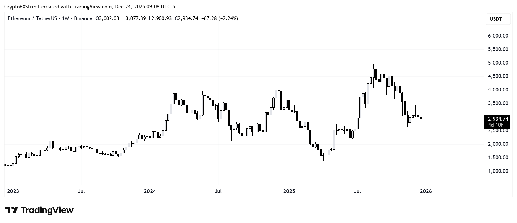 Ethereum (ETH) perdió el 12% de su valor en 2025, disminuyendo de 3.336$ al comienzo del año a 2.930$ en la tercera semana de diciembre, un marcado contraste con la ganancia del 48% de 2024. Pero ese porcentaje no hace justicia al año salvaje que tuvo ETH en 2025.
