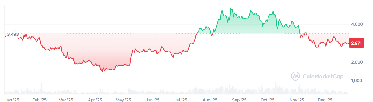 A pesar de ello, no existe garantía de que el token alcance dicho nivel. Este es un punto clave si se tiene en cuenta el pobre desempeño de ETH desde el pasado 10 de octubre, cuando ingresó en una tendencia bajista sostenida. Desde entonces, el precio ha mostrado dificultades recurrentes para recuperar y consolidarse por encima de los $3.000.