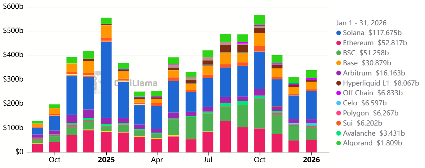 Los volúmenes de trading en los exchanges descentralizados (DEX) de Ethereum alcanzaron los 52.800 millones de dólares en enero, una fuerte caída desde los 98.900 millones de dólares en octubre de 2025. Esta disminución del 47% en la actividad reduce los incentivos para los holders; típicamente, una alta demanda de procesamiento de la blockchain activa el mecanismo de quema de la red, que reduce el suministro total de $ETH.