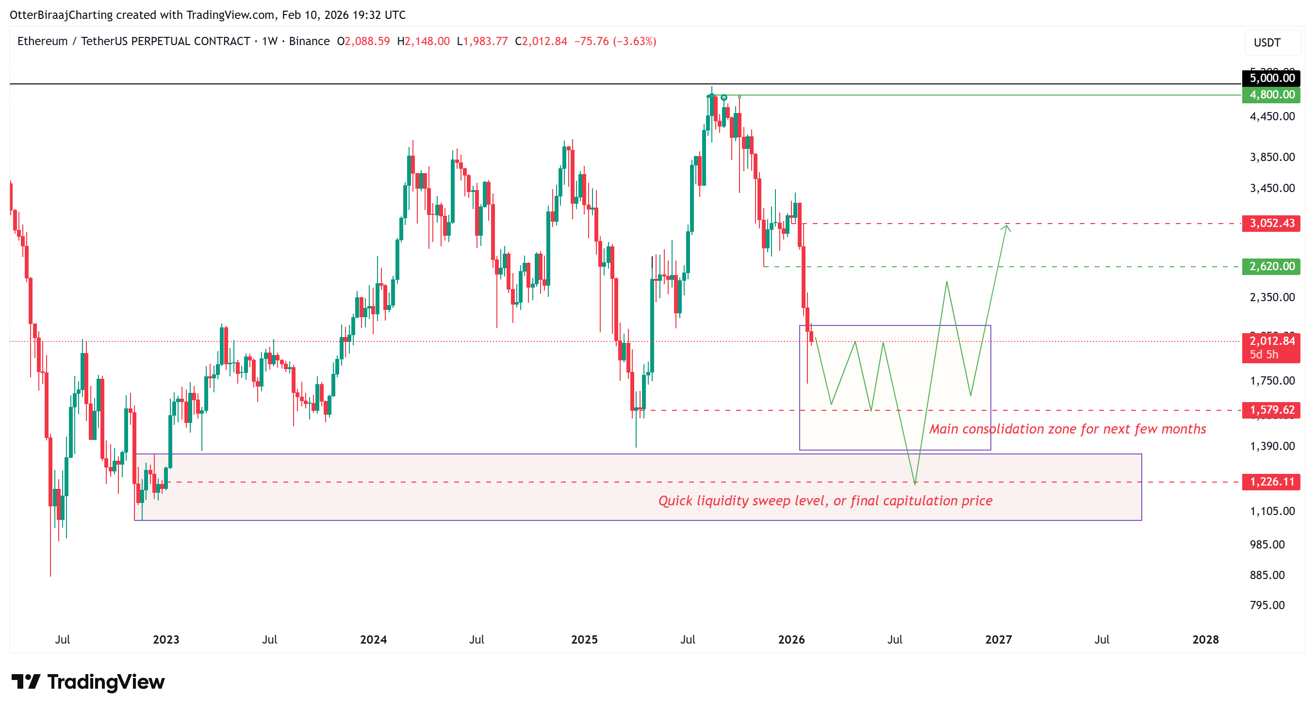 La reciente caída de $ETH a 1.736 dólares podría marcar solo el primero de muchos mínimos en una fase de consolidación mayor.