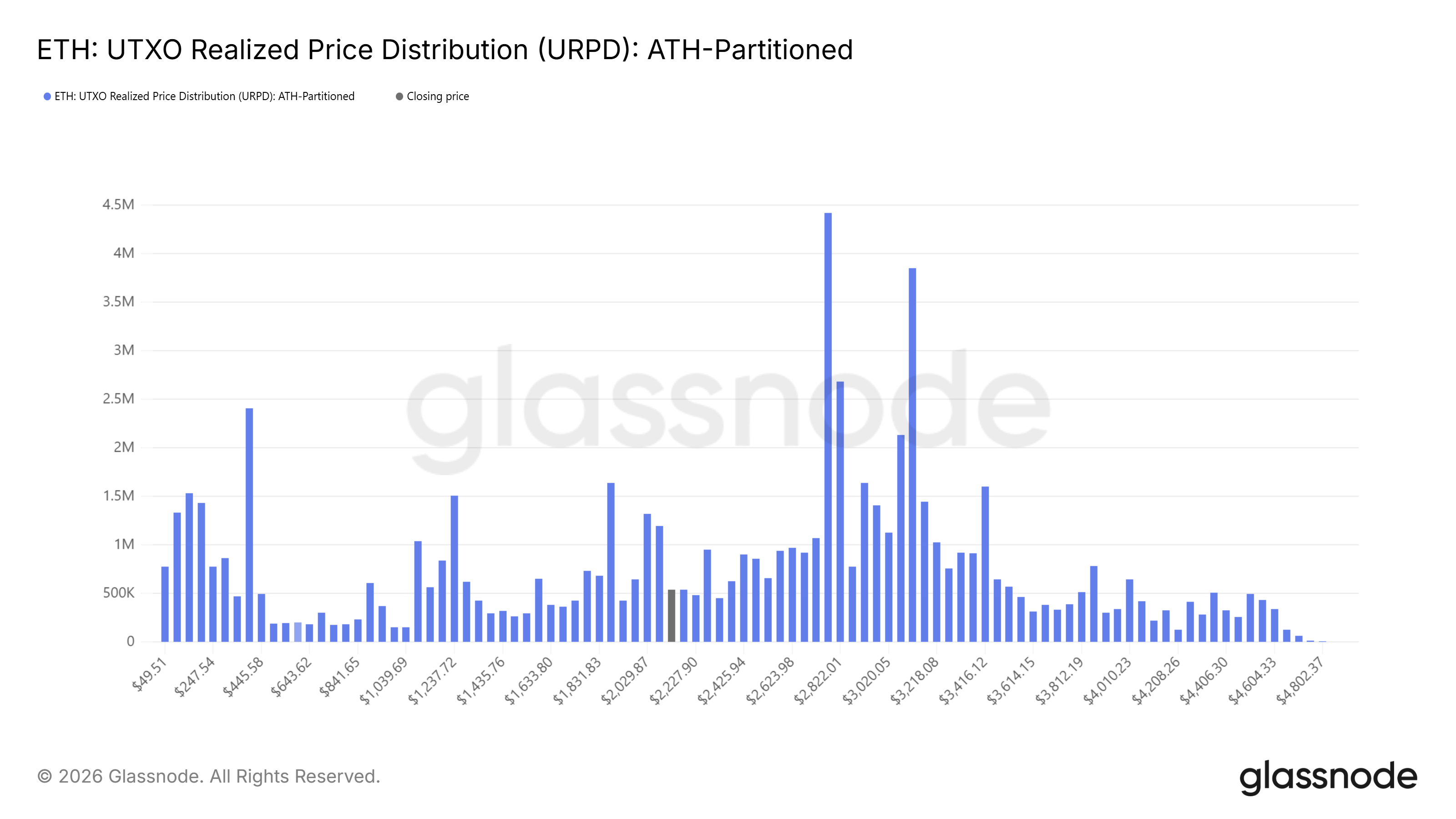 Los datos de distribución de precios realizados de UTXO (URPD) de Ether subrayan las posibilidades de una consolidación prolongada. Grandes grupos de oferta permanecen por encima de los precios actuales, con 2.822 dólares representando el 5,86% de la oferta de $ETH y 3.119 dólares manteniendo el 6,15%, formando una fuerte resistencia superior.