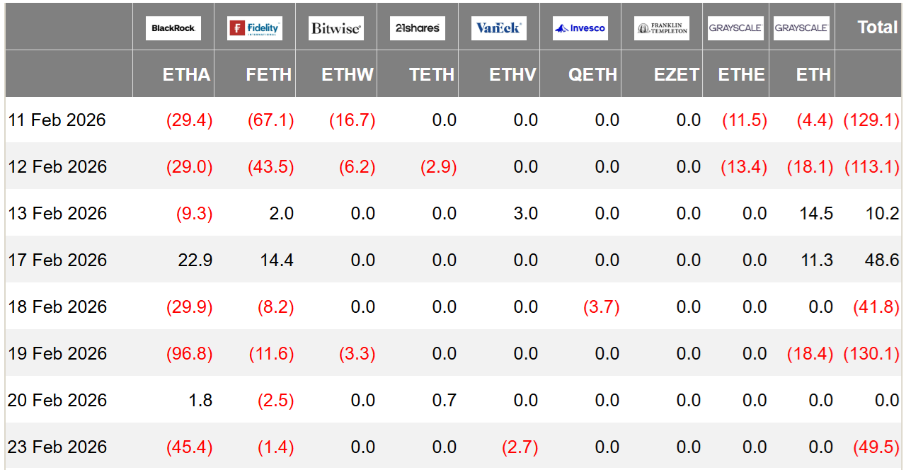 Los ETFs de Ether cotizados en EEUU han registrado 405 millones de dólares en salidas netas desde el 11 de febrero, lo que ha reducido el total de activos bajo gestión a 12.400 millones de dólares. Este cambio ocurrió justo cuando los precios del oro subieron por encima de los 5.150 dólares. De hecho, los ETFs de oro atrajeron 822 millones de dólares en la semana que terminó el 20 de febrero, según gold.org.