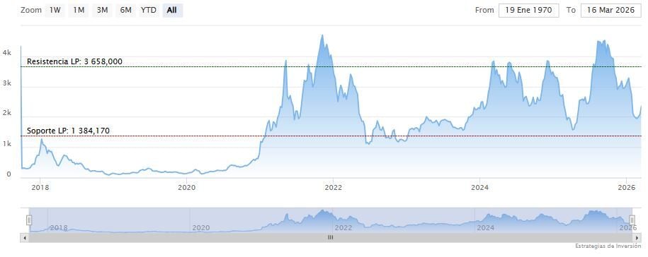 Sin embargo, si no se mantiene este nivel, podría producirse una nueva consolidación entre los 2.000 y 2.300 dólares, a medida que el mercado continúa buscando una dirección.