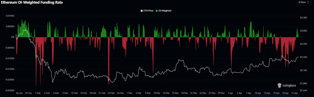 Tras una extensión indefinida de la tregua de Estados Unidos con Irán, Ethereum ($ETH) cotiza cerca de 2.400$ el miércoles en medio de una recuperación del interés alcista en su mercado de derivados.