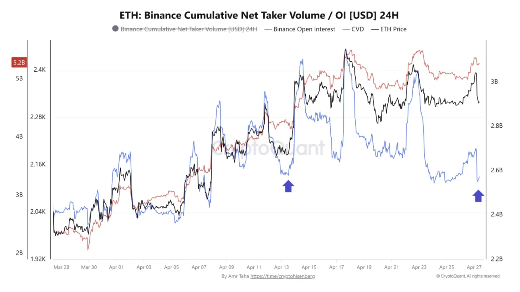 $ETH: Volumen acumulado neto de takers de Binance. Fuente: CryptoQuant
