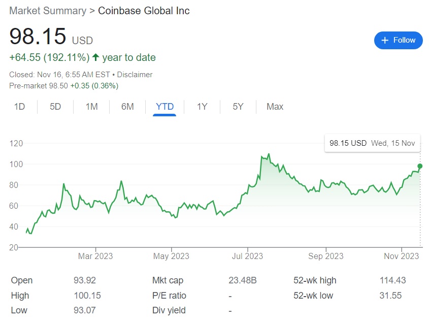 - Las acciones de Coinbase se han disparado más de 190% en lo que va de 2023