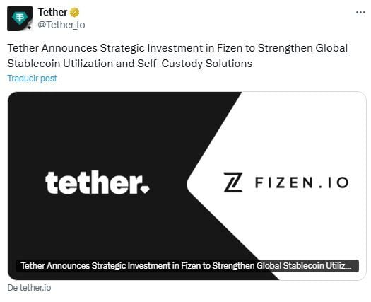 Tether añadió que su capital mejorará las capacidades blockchain de Fizen, permitiendo una integración fluida en múltiples ecosistemas blockchain y reduciendo las barreras de entrada para usuarios no familiarizados con la tecnología criptográfica.
