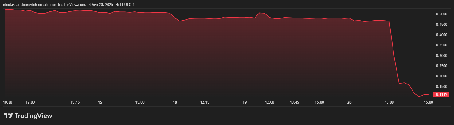 Tras estas novedades, el precio de WINT cayó más de 70% en cuestión de minutos, tal como se ve en el siguiente gráfico de TradingView: