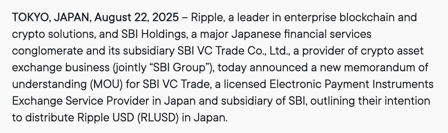 - Ripple planea expandir RLUSD en Japón a través de SBI Holdings.