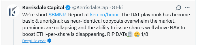 Kerrisdale Capital, conocido por sus tácticas de venta en corto, anunció recientemente su posición corta en acciones de Bitmine (BMNR). Este movimiento marca la fase preliminar para prever el colapso de las empresas de reservas cripto. Notablemente, ninguna empresa en muchas bolsas globales, incluyendo las de EE.UU., Japón y Alemania, ha establecido aún una empresa de reservas cripto. Sin embargo, algunas han descubierto métodos para aprovechar las criptomonedas como reservas para reforzar artificialmente los precios de las acciones.