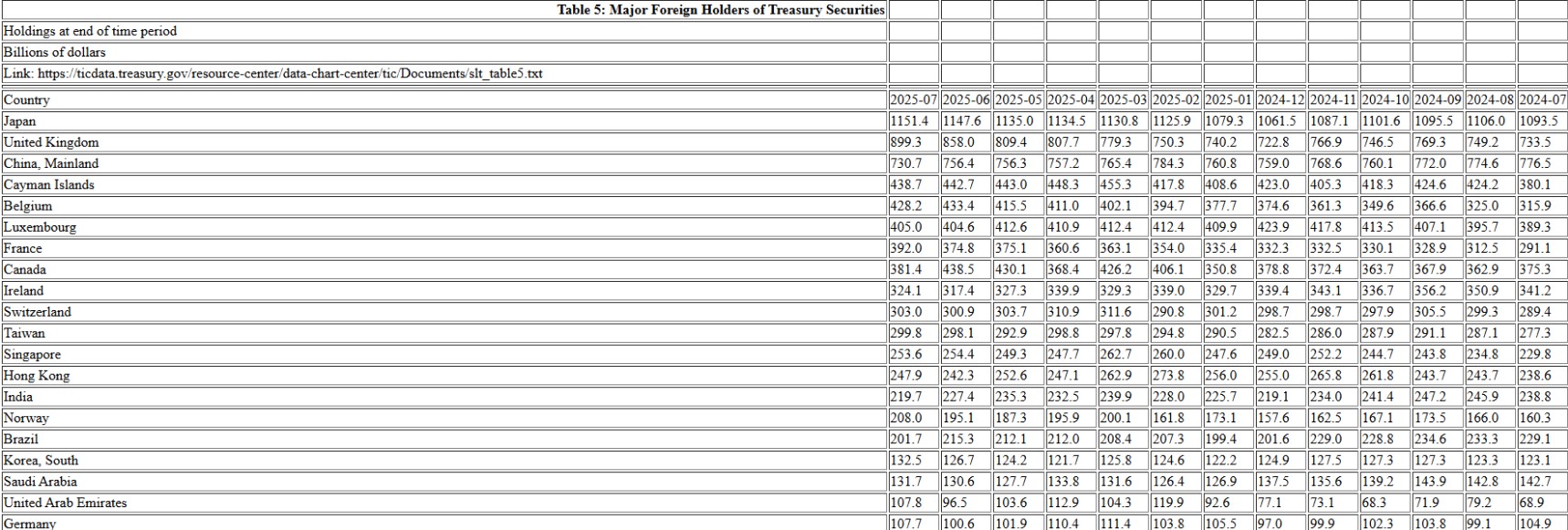 Ese monto es superior al de Alemania y Emiratos Árabes, que tienen 107.700 millones de dólares y 107.800 millones de dólares en bonos del Tesoro, según los datos del propio Departamento del Tesoro estadounidense.