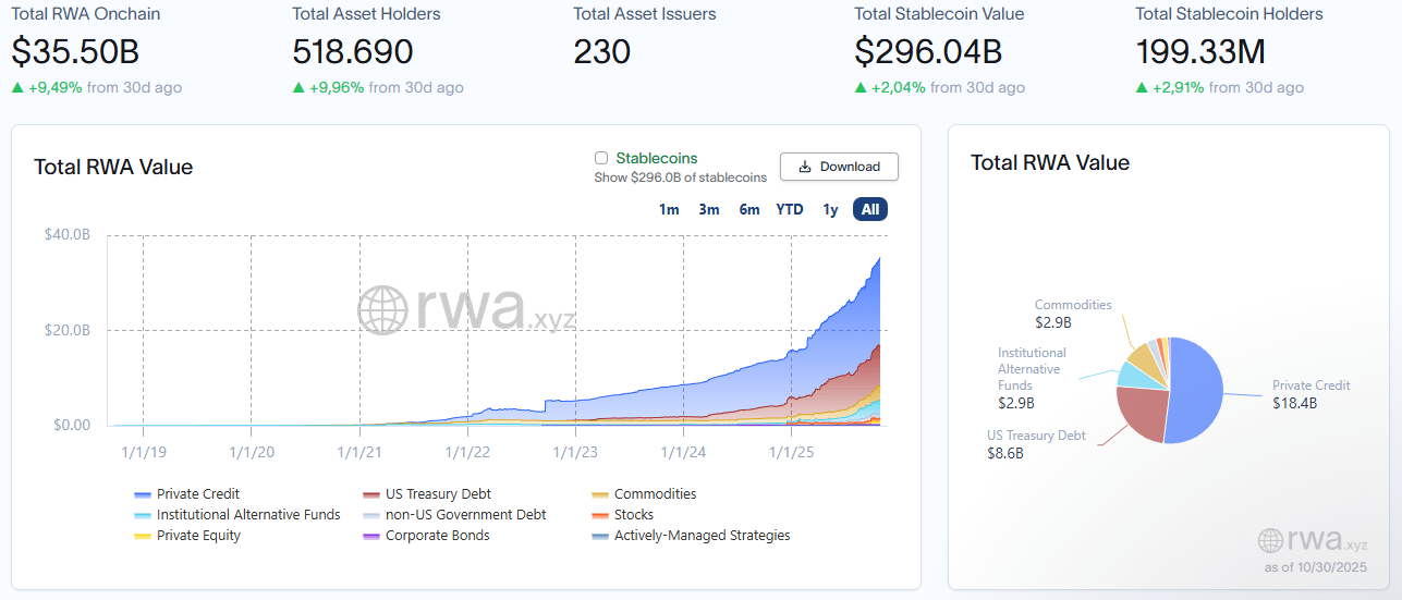 Actualmente, según datos de RWA.xyz, el valor de mercado de los RWA tokenizados ronda los $35.000 millones. De confirmarse la proyección del banco, implicaría un crecimiento de casi 57 veces en los próximos tres años.