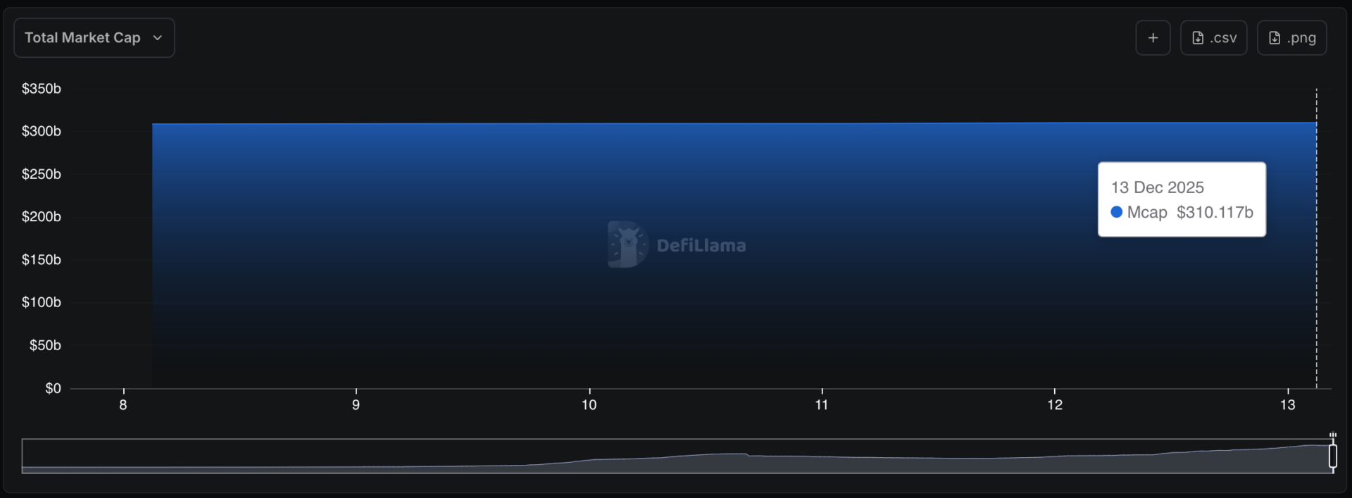 El mercado de monedas estables registró un nuevo récord de capitalización de mercado de $310.117 mil millones el sábado 13 de diciembre.