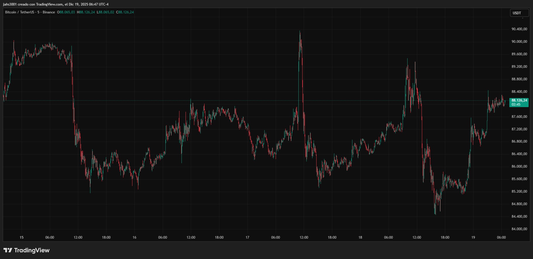Actualmente, la moneda digital lucha por consolidarse sobre niveles de USD 88.200, según la Calculadora de Precios de CriptoNoticias. Ello, mientras el mercado asimila las implicaciones de una FED potencialmente menos restrictiva.