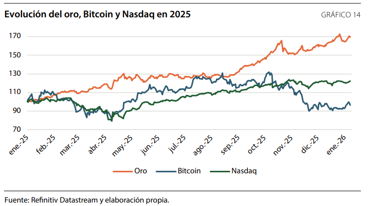 Además, el documento cuestionó la narrativa de Bitcoin como “oro digital” o activo refugio, asegurando que los datos de correlación muestran que, en momentos de incertidumbre, Bitcoin tiende a comportarse más como un activo de riesgo (similar al Nasdaq) que como un metal precioso, divergiendo significativamente de la evolución del precio del oro.