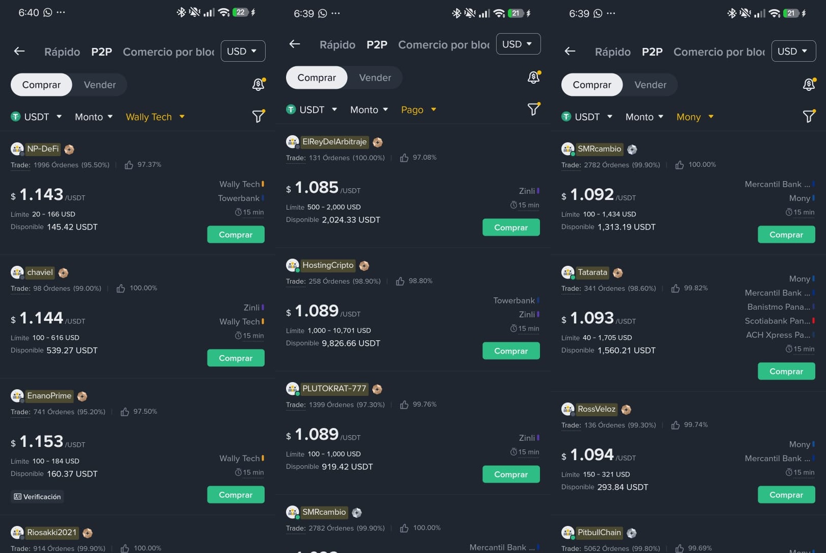 Esta práctica ha saturado la liquidez en las pasarelas de pago panameñas. Según reportes de usuarios y traders, el costo de adquisición de $USDT ha pasado de tasas estables de 1,012 a picos de 1,094 y hasta de 1,14 dólares, lo que representa una pérdida de valor inmediata de casi el 10% solo en la ejecución de la compra, superando incluso las comisiones de compra directa con tarjetas de crédito internacionales.