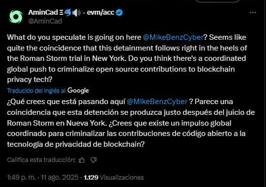Como lo informó CriptoNoticias en un artículo anterior, Fede´s Intern rechazó categóricamente los cargos. Luego aclaró que su trabajo se limitó a un artículo académico que, de hecho, demostraba cómo desanonimizar usuarios de Tornado Cash, no a facilitar actividades ilícitas. «Los delincuentes son quienes infringen la ley», argumentó con firmeza, y comparó la situación con culpar al creador de Linux si un misil usa su sistema operativo para funcionar.