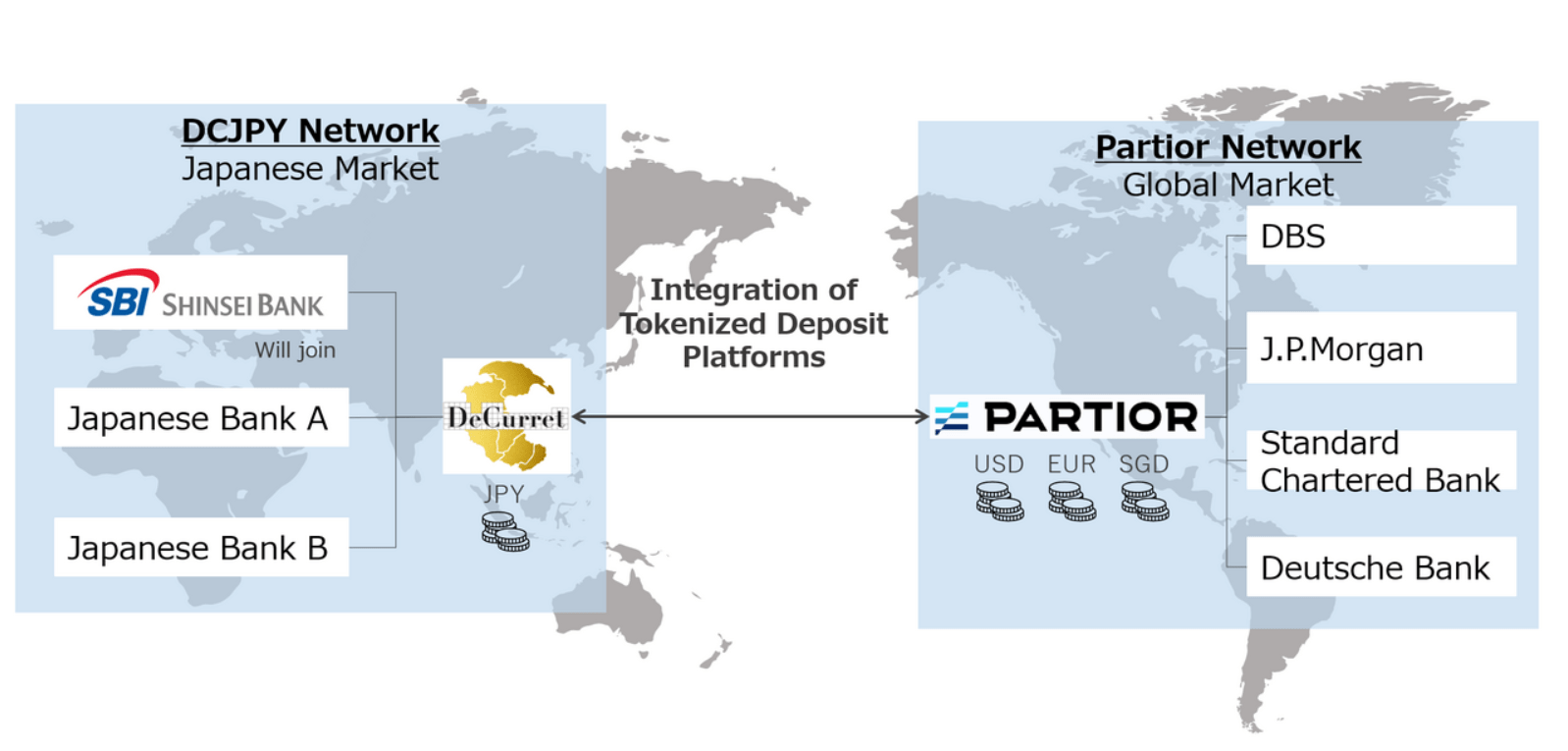 En la colaboración, SBI Shinsei se enfocará en la emisión, DeCurret conectará su sistema DCJPY a la red internacional de Partior, y Partior integrará la compatibilidad con el yen en su infraestructura.