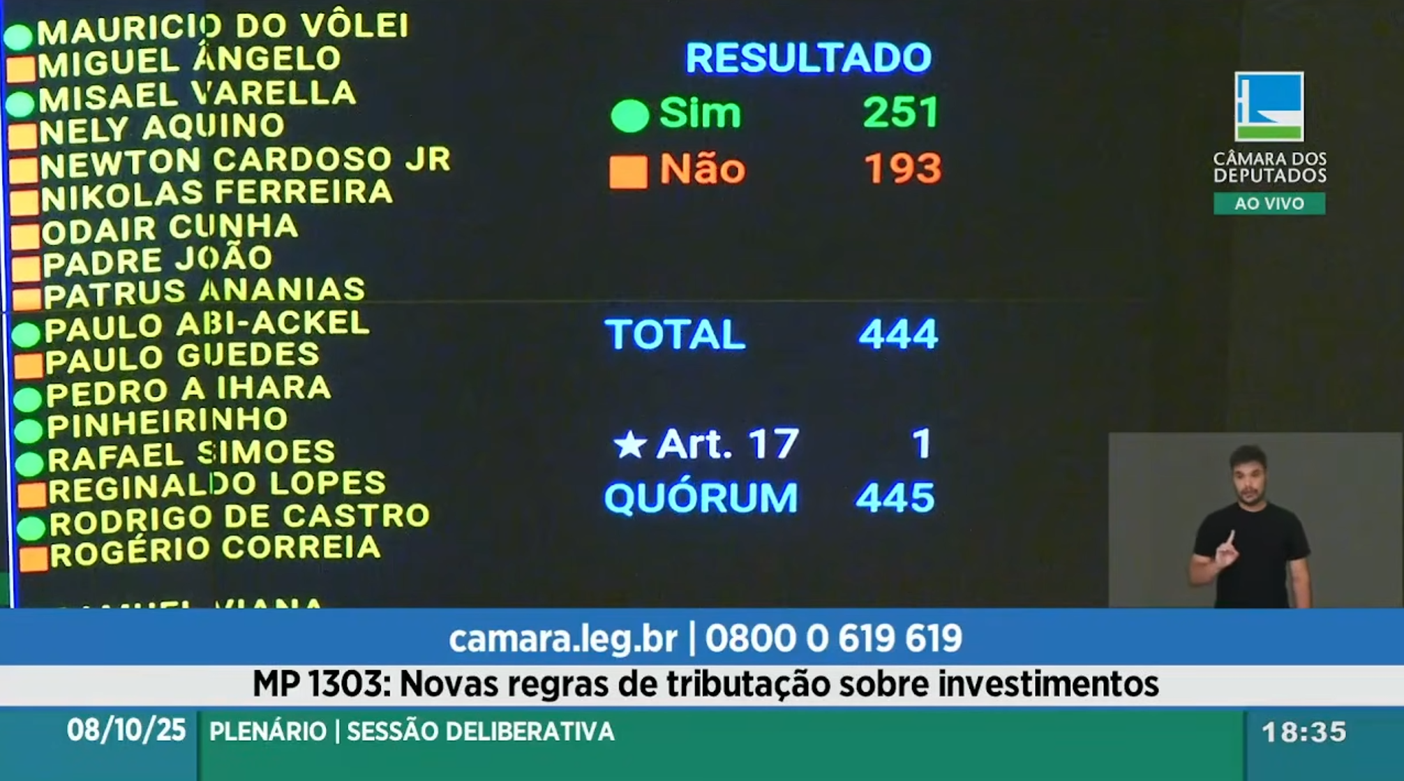 La Cámara de Diputados rechazó, este miércoles (8), la Medida Provisional 1.303, que preveía la tributación de operaciones con criptomonedas y el aumento de la tasa del Impuesto sobre la Renta para fondos exclusivos, fijada en 18%. La decisión pone fin a una de las agendas más controvertidas en el Congreso en las últimas semanas, marcada por desacuerdos entre el gobierno y el sector financiero.