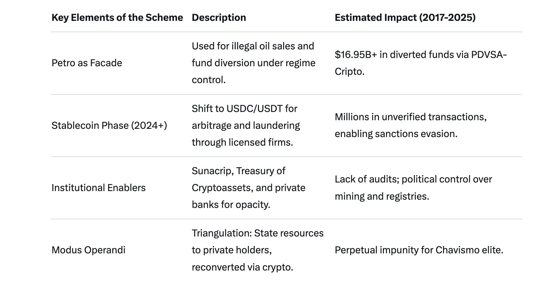 Tras el derrumbe del Petro, el gobierno venezolano adoptó un nuevo modelo: las stablecoins. Empresas con licencias estatales como Kontigo y Crixto Pay comenzaron a mover millones de dólares en transacciones digitales, comprando USDC o USDT a tasa oficial y revendiendo en el mercado paralelo. El resultado fue un circuito de arbitraje y conversión de activos ilícitos en divisas aparentemente legítimas.