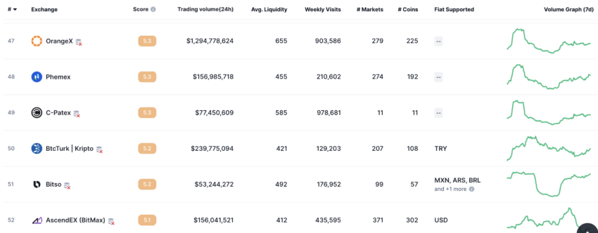 En la lista de exchanges de CoinMarketCap, Bitso está situado en el sitio 51 a nivel mundial, con un volumen de tradingdiario de más de 53 millones de dólares y más de 176 mil visitas semanales. Además, tiene listadas 57 criptomonedas y es uno de los pocos exchanges que no ha revelado los datos de sus reservas.